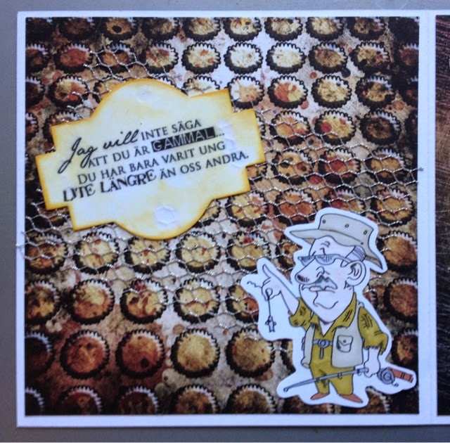 Fick beställning på ett kort till en 50-åring som håller på med karate och gillar att fiska. Det blev en riktig utmaning. Inte hade jag några bra ideer och inte heller särskilt mycket material. Gott om tid var det också ont om.